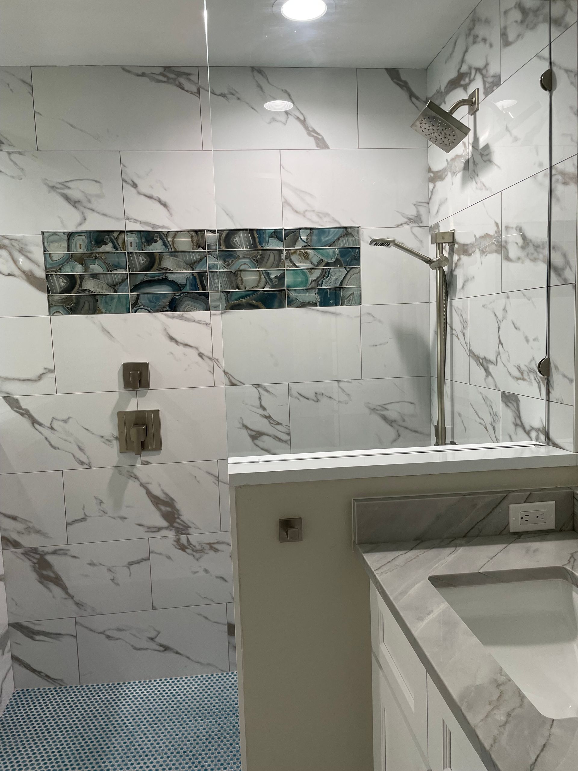- Custom design/build of walk in shower with 3 niches